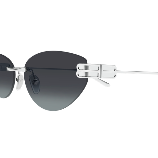 Un nuovo concept commerciale da donna, con una leggerissima struttura rimless in metallo. Il modello presenta una morbida forma cat-eye femminile. Il logo in bassorilievo è abbinato a una finitura sabbiata all’interno dei fori delle lettere BB, che crea un raffinato gioco di texture e contrasti con la superficie superiore lucida.
