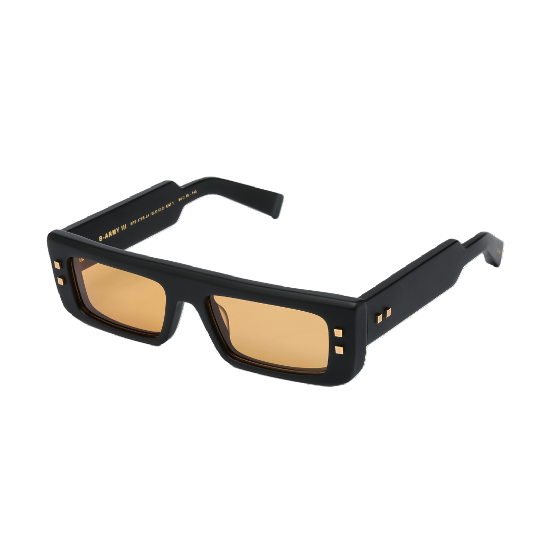 Gli occhiali da sole Balmain B-Army III 175B Matte Black emanano uno stile distintivo con la loro montatura rettangolare unisex che completa qualsiasi guardaroba alla moda. La montatura nera opaca è realizzata in acetato giapponese di prima qualità, che offre una sensazione di lusso e durata. Impreziositi da cerniere in oro 18 carati e da un sistema di viti in titanio giapponese, questi occhiali da sole promettono resistenza ed eleganza. Le lenti in plastica CR-39, in un'accattivante tonalità arancione, sono dotate di un rivestimento antiriflesso che garantisce chiarezza e riduzione dei riflessi. Realizzati in Giappone, gli occhiali da sole incorporano naselli e aste in acetato modellato, in linea con l'impegno di Balmain per un'artigianalità e un'innovazione superiori.