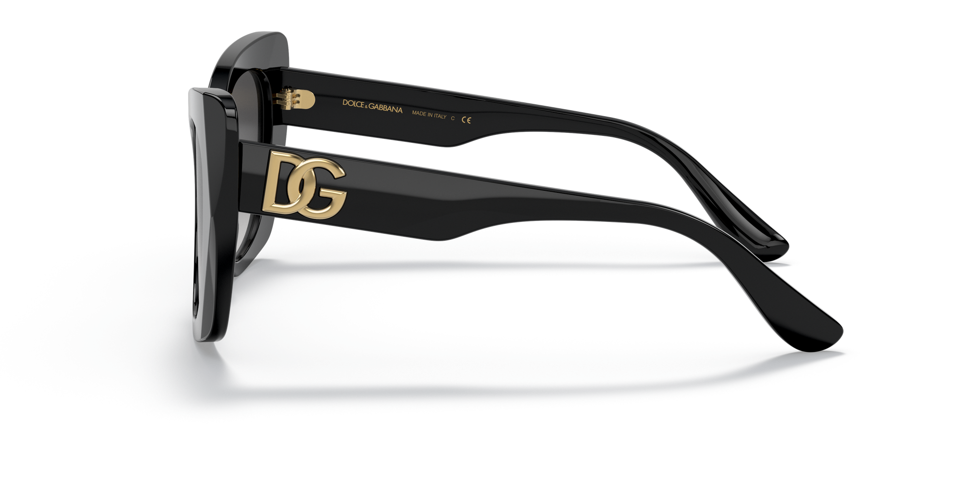 L'iconica forma a occhio di gatto, caratterizzata da una montatura in acetato e dal monogramma DG Crossed, celebra la tradizione Dolce & Gabbana.