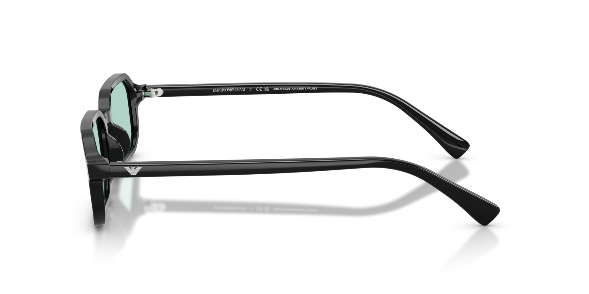 Un salto nel futuro con un cenno al passato. Queste montature rettangolari strette sono un ritorno agli anni '60 per chi le indossa oggi. La struttura in bioacetato si adatta con leggerezza al pianeta, mentre l'iconica aquila dispiega le sue ali in metallo scintillante sull'asta.