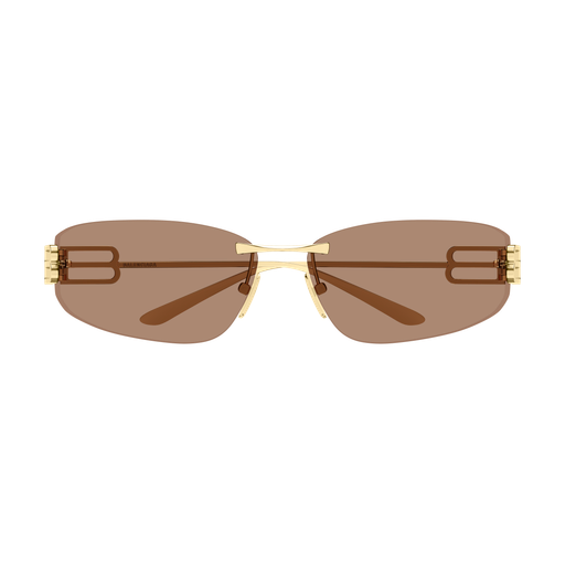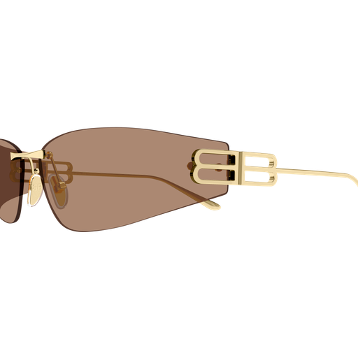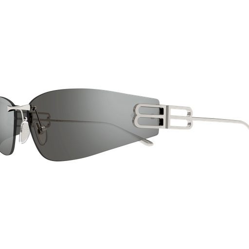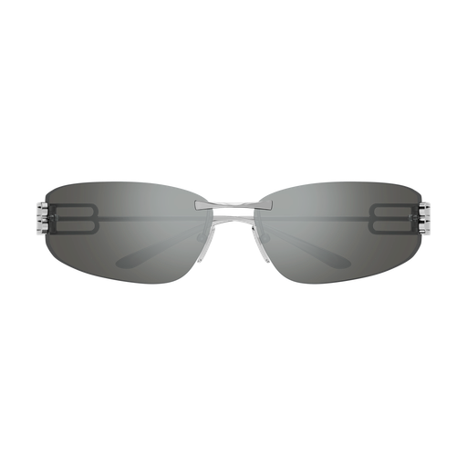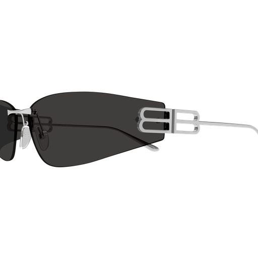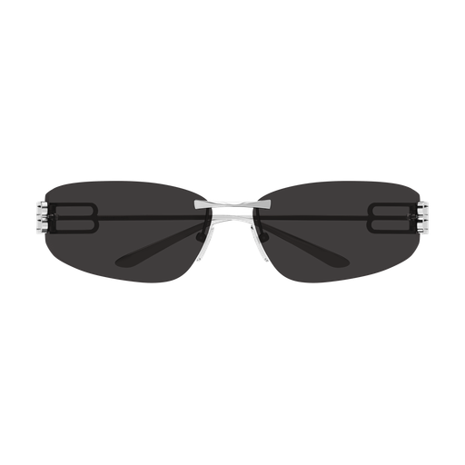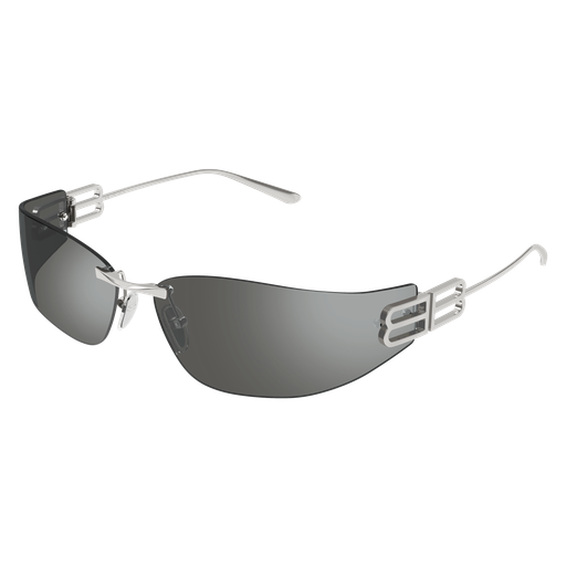 Un nuovo concept commerciale da donna, con una leggerissima struttura rimless in metallo. Il modello presenta una forma cat-eye estrema con lenti avvolgenti. La linea è caratterizzata da un maxi logo BB Stretched cut-out.